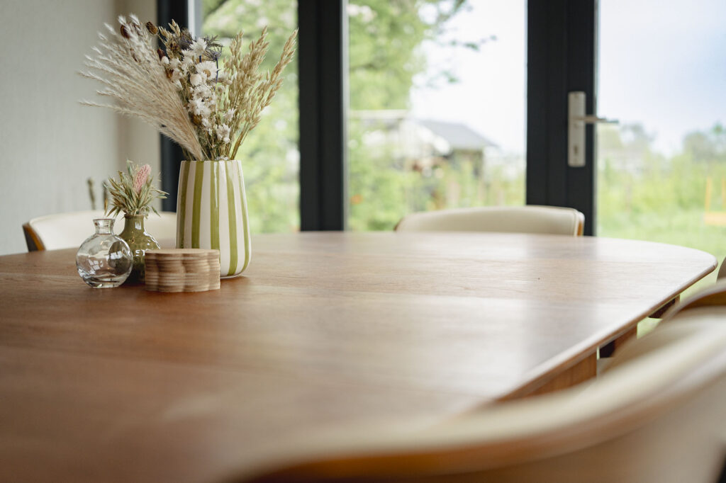 Onze vergaderruimte voelt als een comfortabele woonkamer, maar werkt als een stille kracht. Grote ramen brengen licht en uitzicht naar binnen, de houtkachel zorgt voor warmte en sfeer. Buiten nodigt de tuin met boomgaard uit tot een korte wandeling of een inspirerende break. Dit is de plek waar focus, creativiteit en verbinding vanzelf ontstaan.